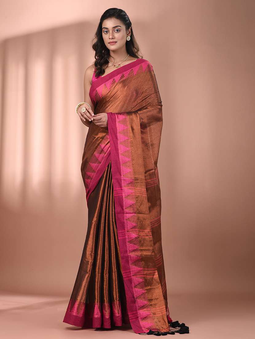 A saree that spells elegance and beauty. This saree hugs your curves to give you an alluring look. The captivating color, the sheen texture is everything you will need this season. Style this up with oxidized jewelry for a fab look!