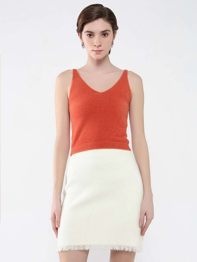 - » women orange self-designed regular top
