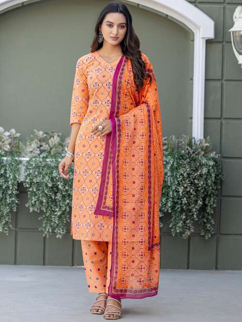 - » women printed three quarter sleeve kurta pant with dupatta set