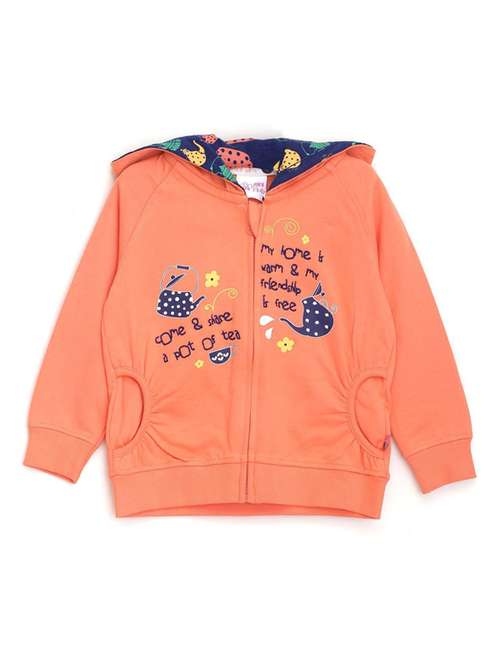 coral cotton front print sweatshirt