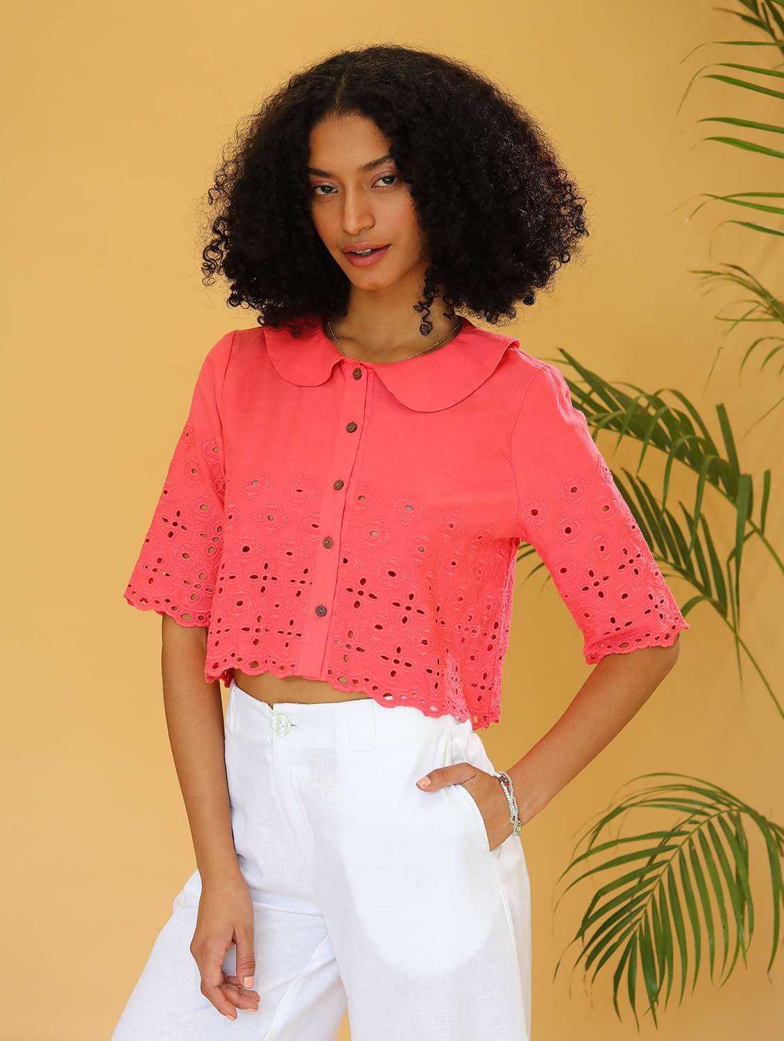 women peter pan collar schiffli shirt style top