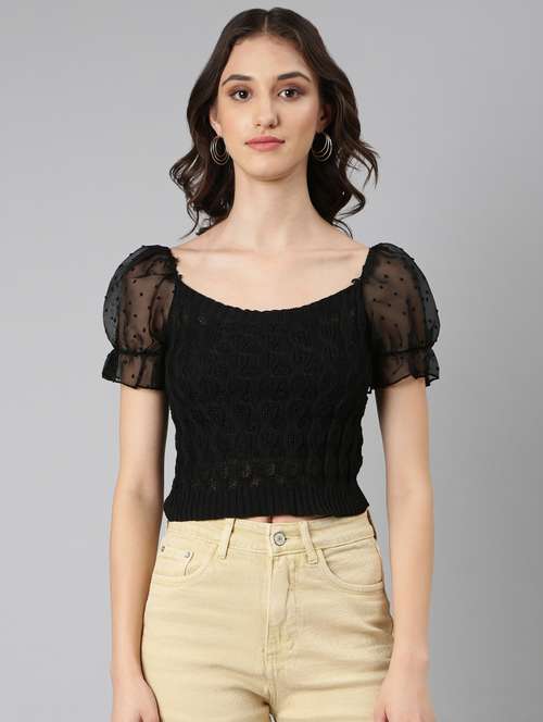 - Opt for this top made up of acrylic material and get it in a varied neck design.
