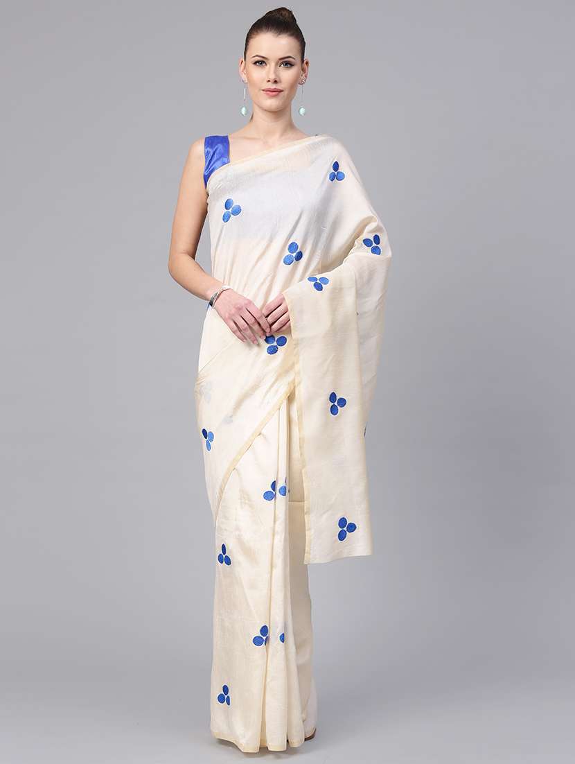- » ivory polka dots embroidered saree with blouse
