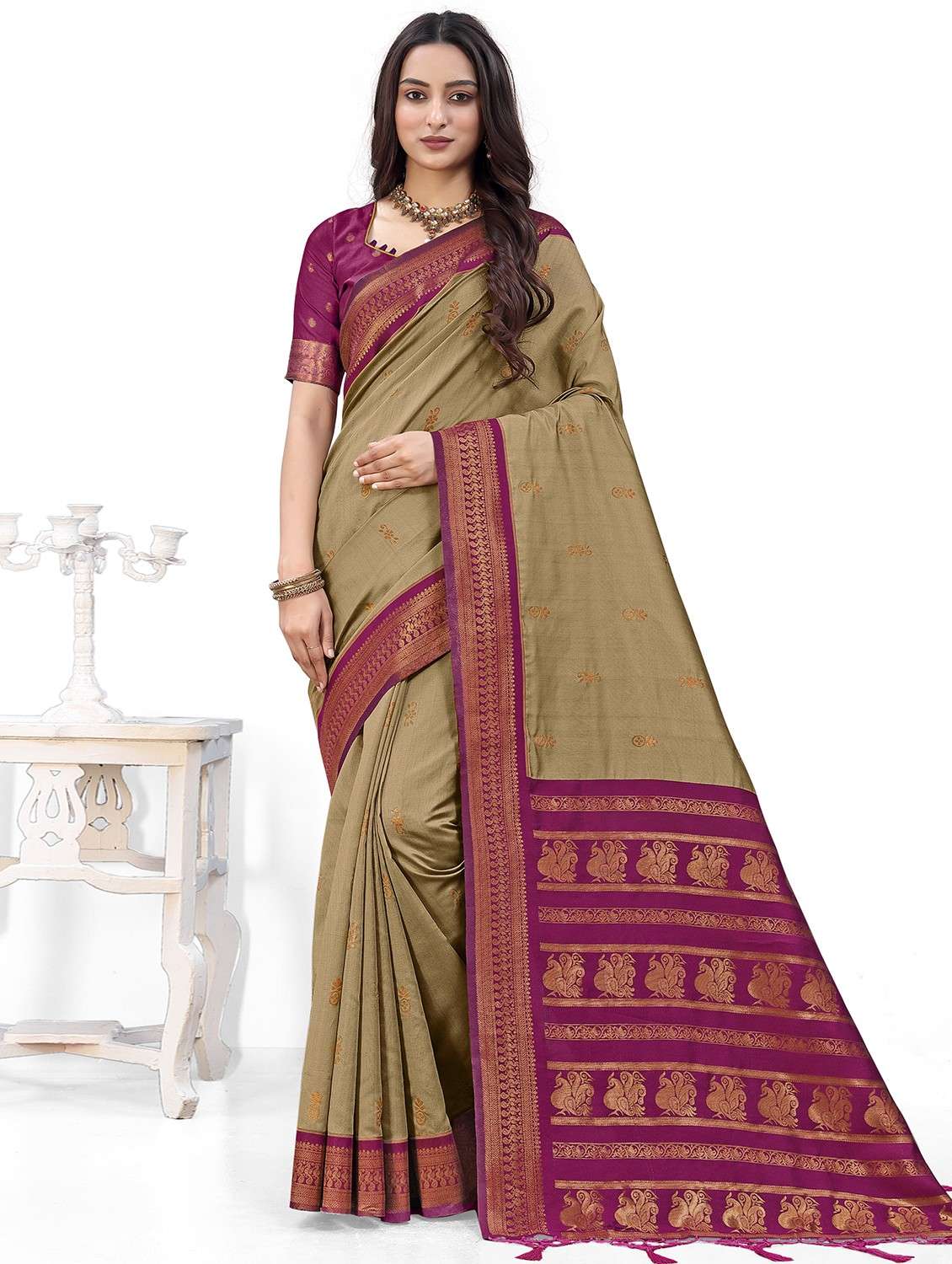 - » women self design bordered saree with blouse