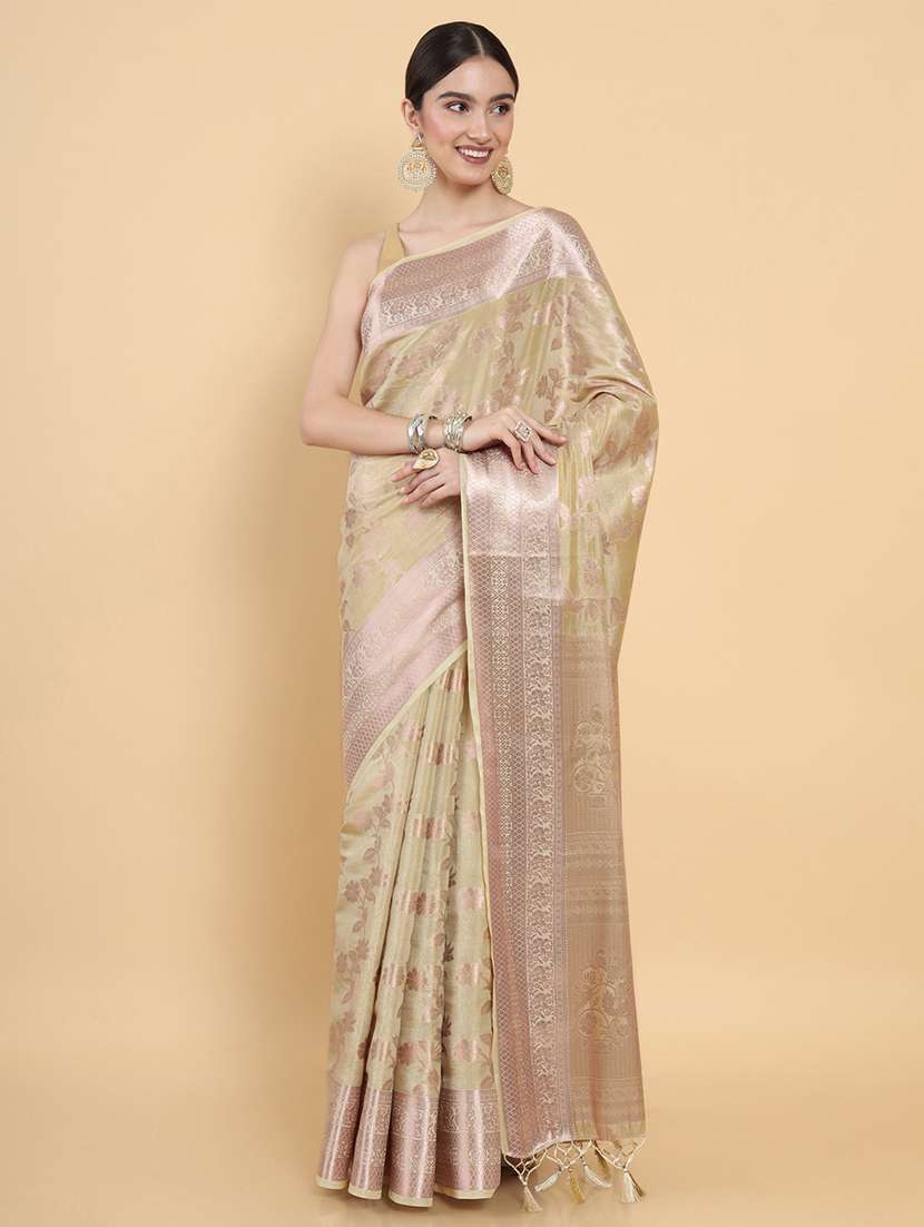 women's self design cream colored saree with blouse - 18801483 - Very Small Image - 1