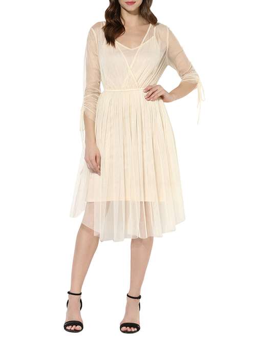 - » cream net fit & flare dress