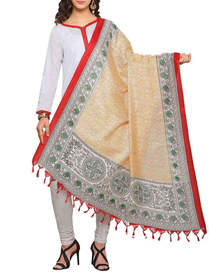 - » cream art silk madhubani printed dupatta