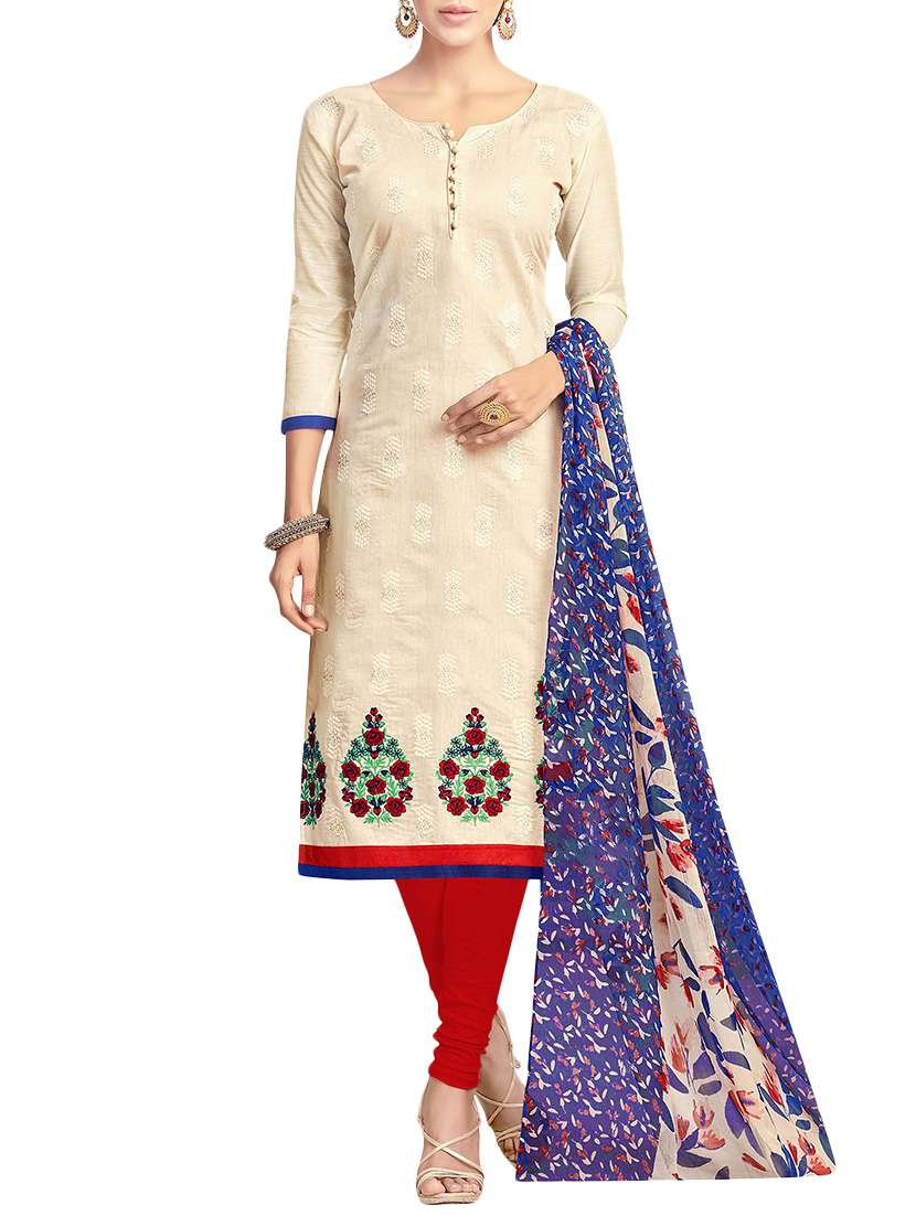 embroidered unstitched churidaar suit - 14610377 - Very Small Image - 1