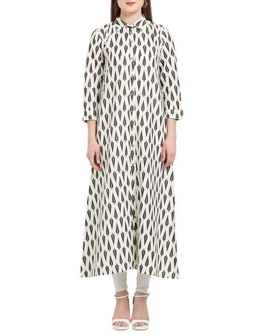 white cotton blend a-line kurta
