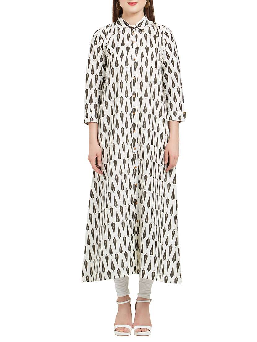 white cotton blend a-line kurta - 14946991 - Very Small Image - 1