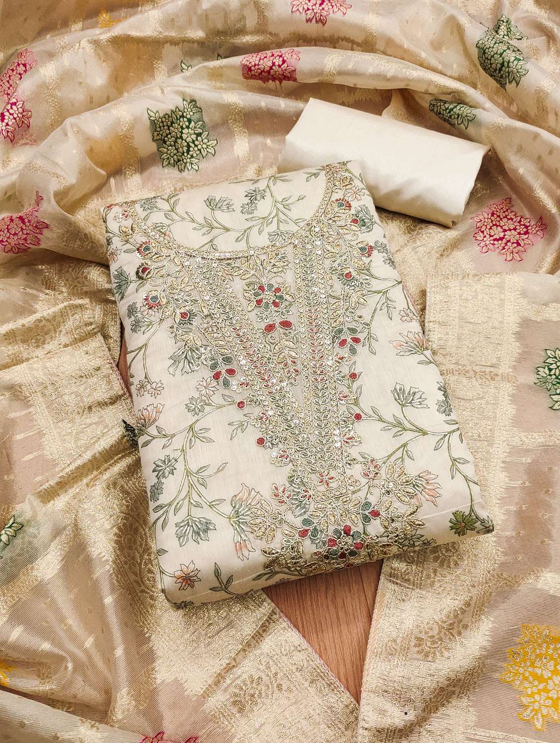 - Look ultra gorgeous in unstitched suits from Leeli Peeri Designer and grab these beautiful suits in cream colour.