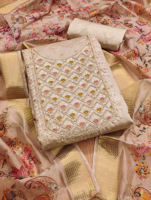 - Look ultra gorgeous in unstitched suits from Leeli Peeri Designer and grab these beautiful suits in cream colour.