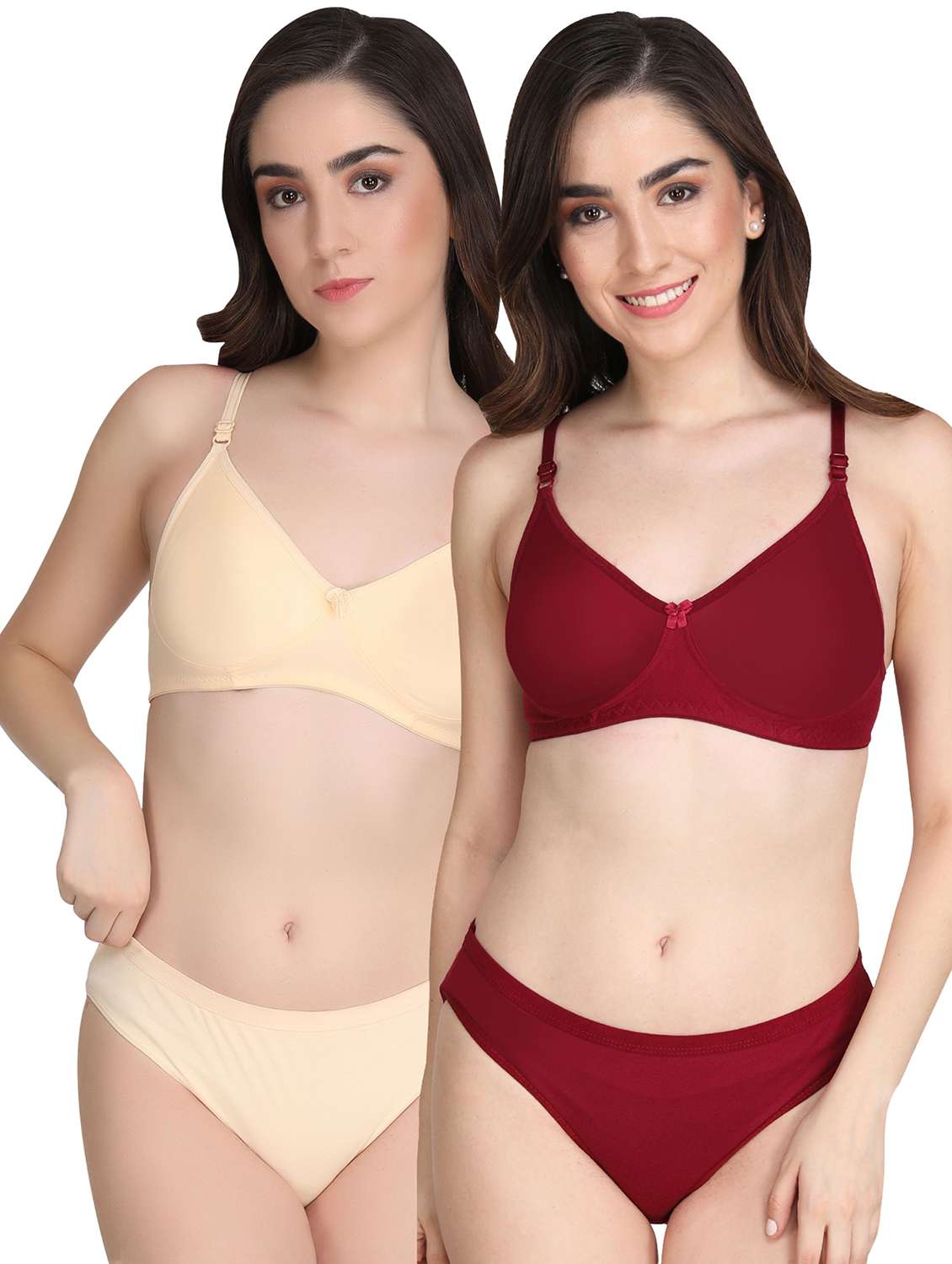 Liigne Women Everyday Non Padded Bra Panty Set (Pack Of 2) - This Lingerie Set Made of Pure Cotton
