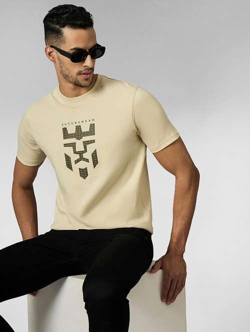 - » men front print round neck regular fit t-shirt