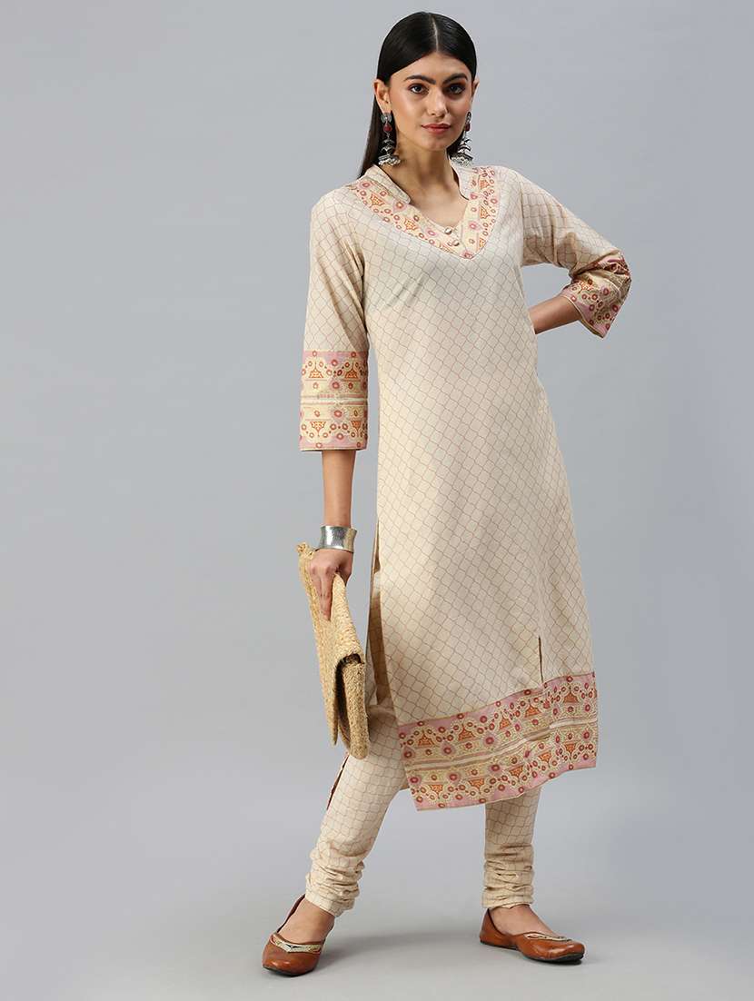 - Find gorgeous sets of ethnic wears in trending designs in cream colors suitable for festive wear of occasions.