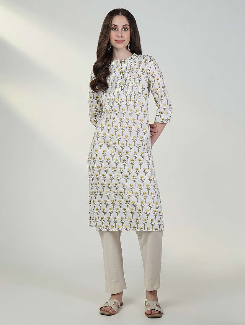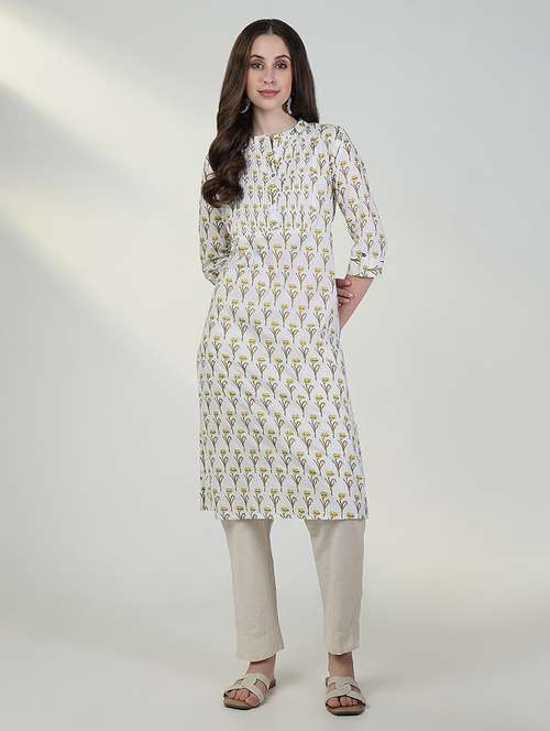 - Grab this beautiful kurta made up of cotton blend fabric featuring mandarin collar neck designs.