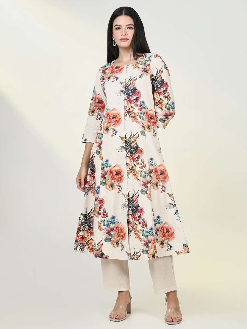 - » women cream floral printed kurta pant set