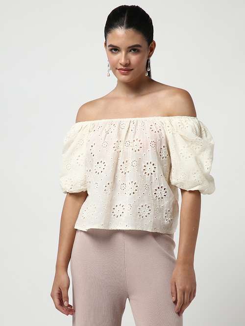 - » women cream solid with work puff sleeve top
