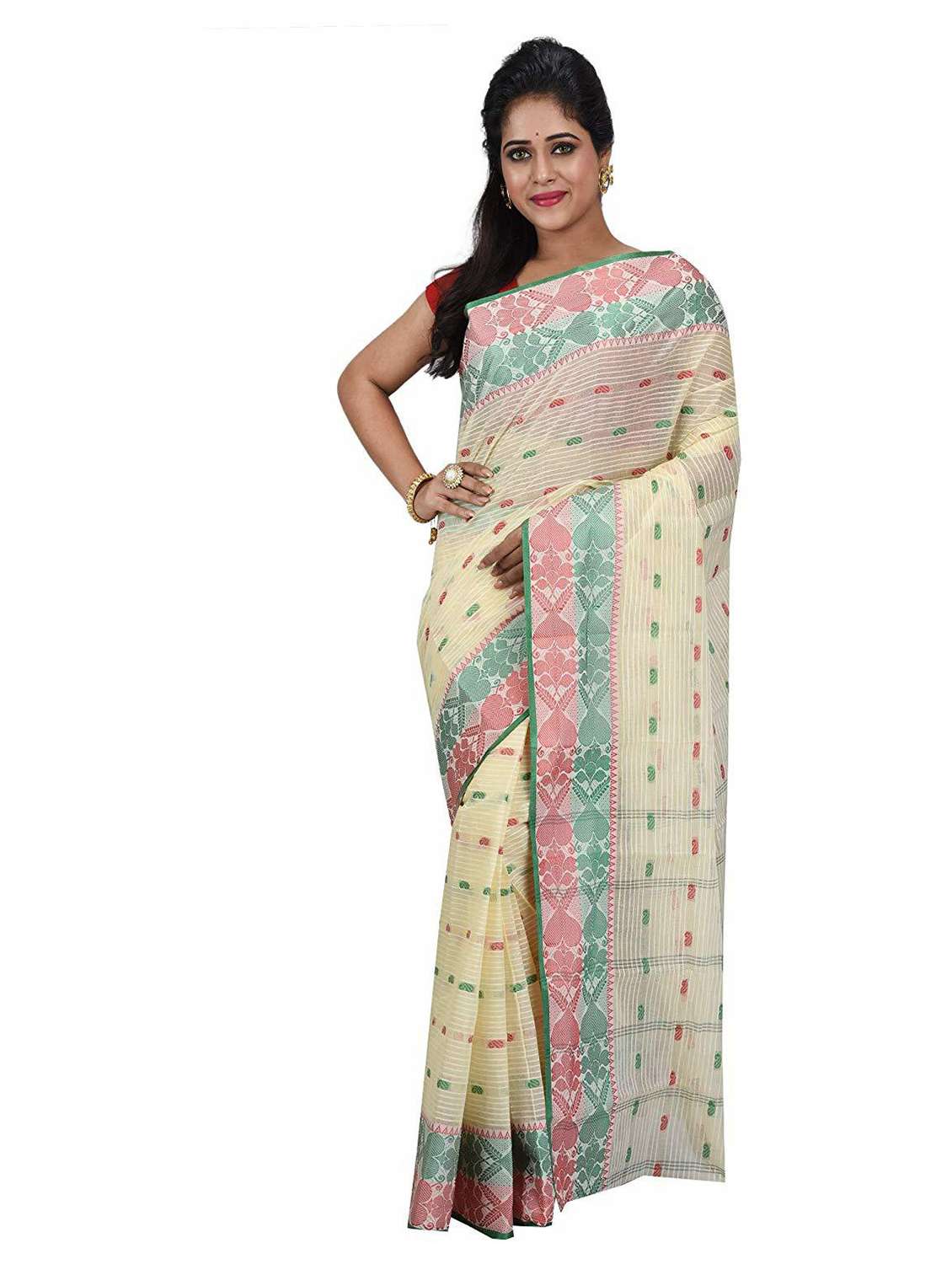 women's self design cream colored saree