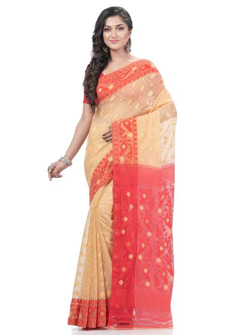 Explore the collection of beautifully Bengal Traditional Tant/Tangail Handloom Hand Made Digital MinaKarat Resham Dhakai jamdani Bengal Pure Cotton Handloom Saree Whole Body Design from Desh Bidesh . Each piece is elegantly crafted and will surely add to your wardrobe. Pair this piece with heels or flats for a graceful look. You can wear this saree in all occasions specially Puja, Party and any occasion in your family or friends. The decorative material is Cotton Threads. Its Uniquie cotton thread design whole body. great looking color combination The Elegant Class saree has comes from the Desh Bidesh. customer satisfaction is the utmost priority . The color may vary due to screen setting . Fabric: Cotton; Length: 5.50 meter Set Content: Without Blouse Piece Care Instructions: Dry Clean Only Wash Care : Dry Wash Only, Don’t Bleach
