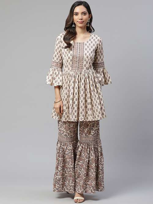 - Save your time mixing and matching various ethnic pieces and invest in beautiful kurta sharara set ethnic sets from Divena brands that give a well-fitted look in all styles.
