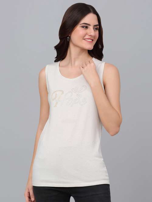 women off white cotton tank t-shirt
