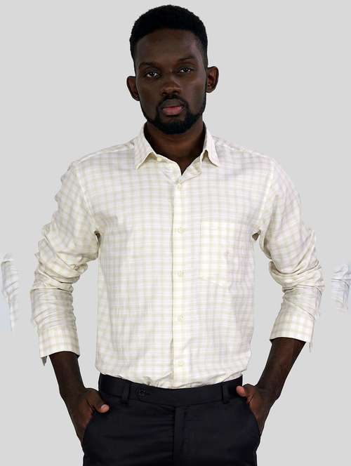 - » cream checked cotton formal shirt