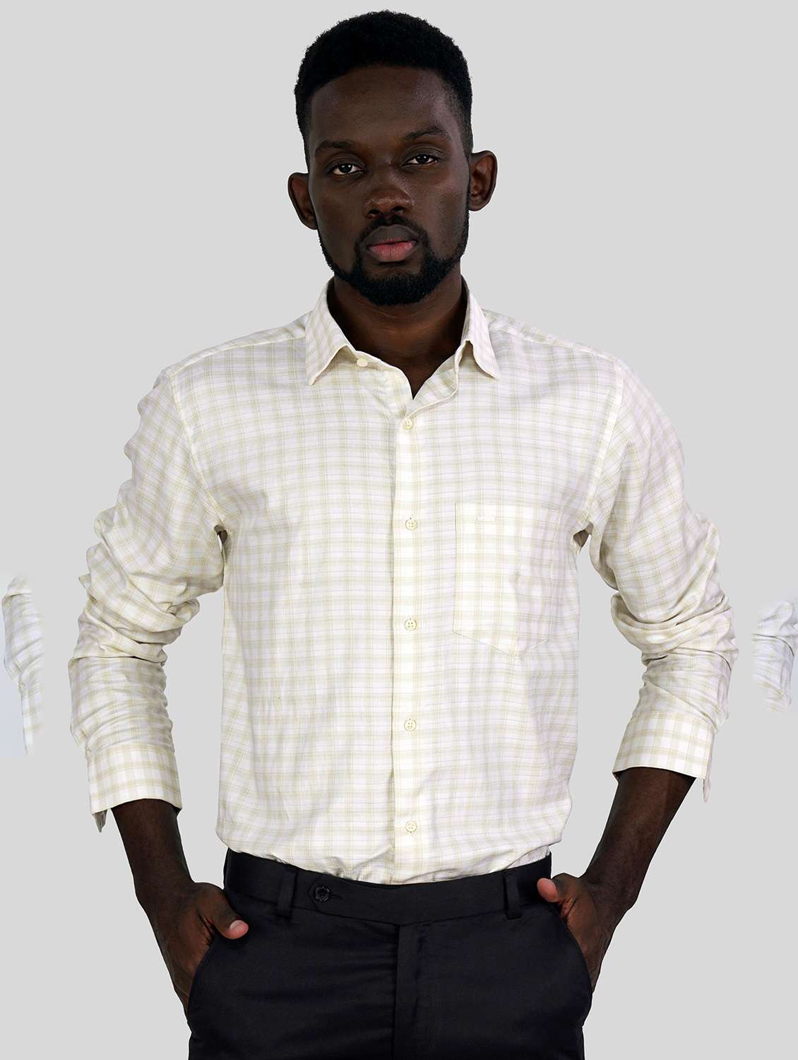 cream checked cotton formal shirt