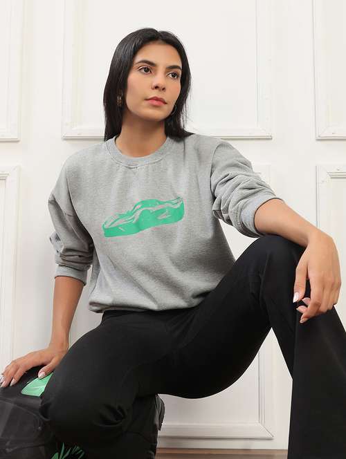- » globus women cream graphic print drop shoulder sleeves round neck ribbed hem pullover sweatshirt