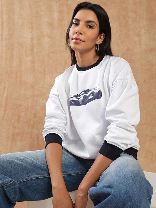 - Recreate your winter style with the all new frisky design options of sweatshirts available in white shades and hues to brighten up the chilly days.