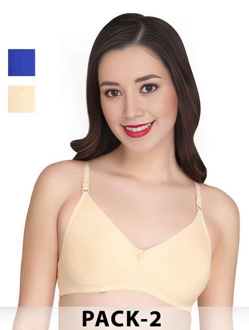 Liigne Women Everyday Non Padded Bra (Pack Of 2) - Made of Pure Cotton Full Coverage Non Wired Pushup Soft Cup for T-Shirt Saree Dress Sports Garment for Daily Use Everyday
