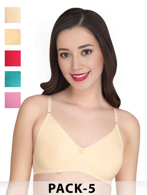 women pack of 5 solid non wired t-shirt bra