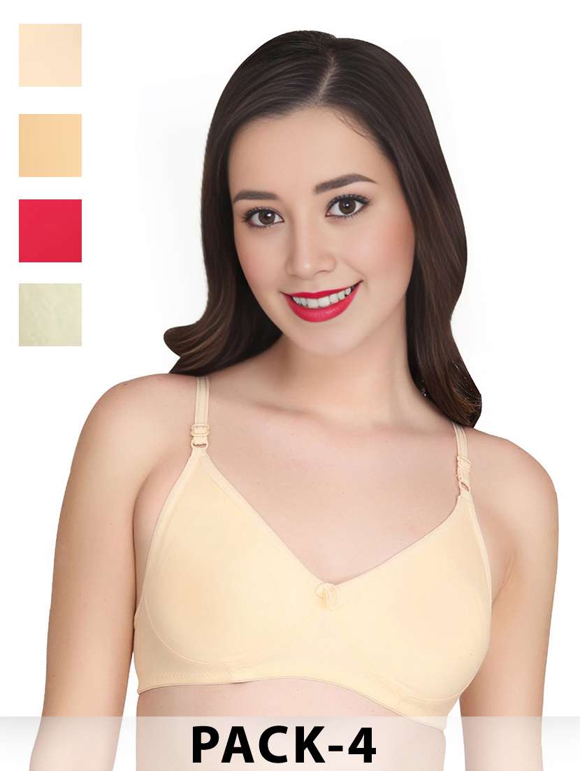 Liigne Women Everyday Padded Bra (Pack Of 4) - Made of Pure Cotton Full Coverage Non Wired Pushup Soft Cup for T-Shirt Saree Dress Sports Garment for Daily Use Everyday