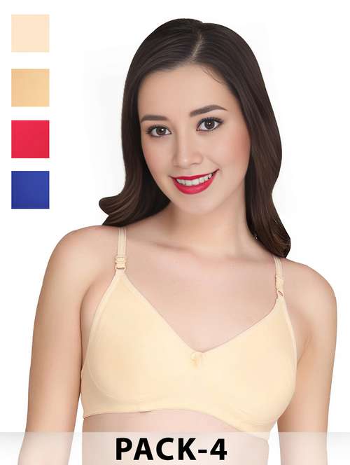 Liigne Women Everyday Padded Bra (Pack Of 4) - Made of Pure Cotton Full Coverage Non Wired Pushup Soft Cup for T-Shirt Saree Dress Sports Garment for Daily Use Everyday
