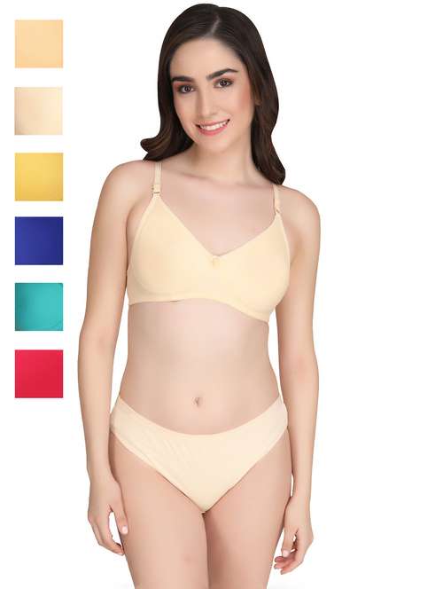 Liigne Women Everyday Padded Bra Panty Set (Pack Of 6) - This Lingerie Set Made of Pure Cotton