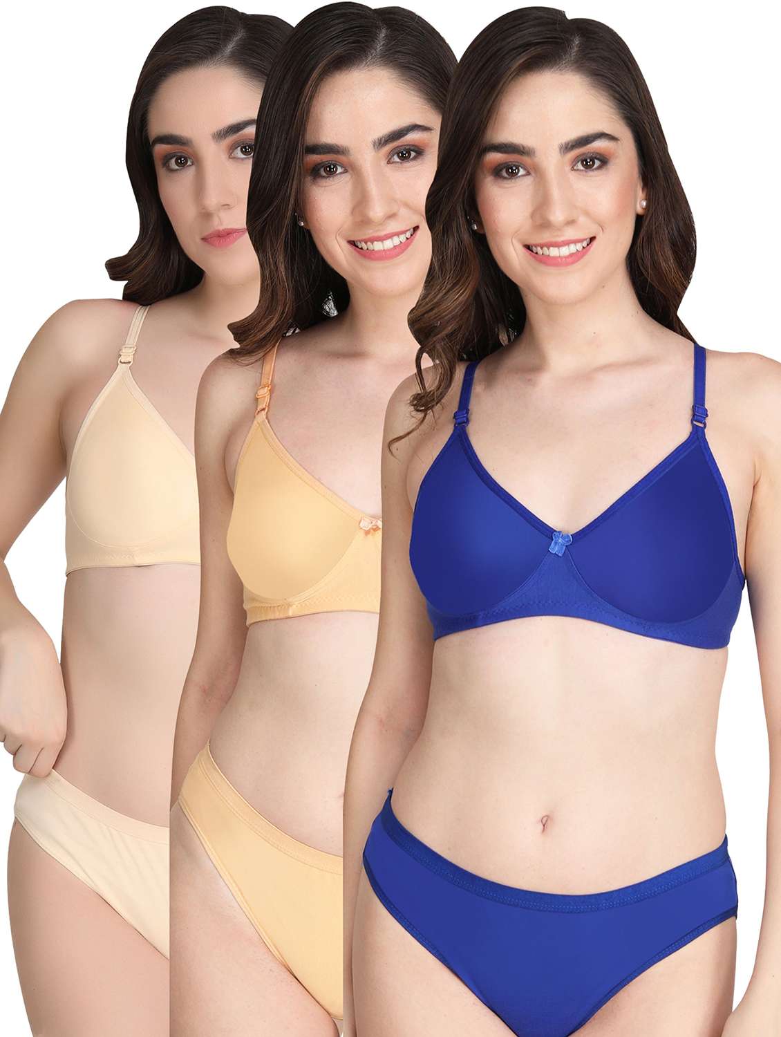 Liigne Women Everyday Padded Bra Panty Set (Pack Of 3) - This Lingerie Set Made of Pure Cotton
