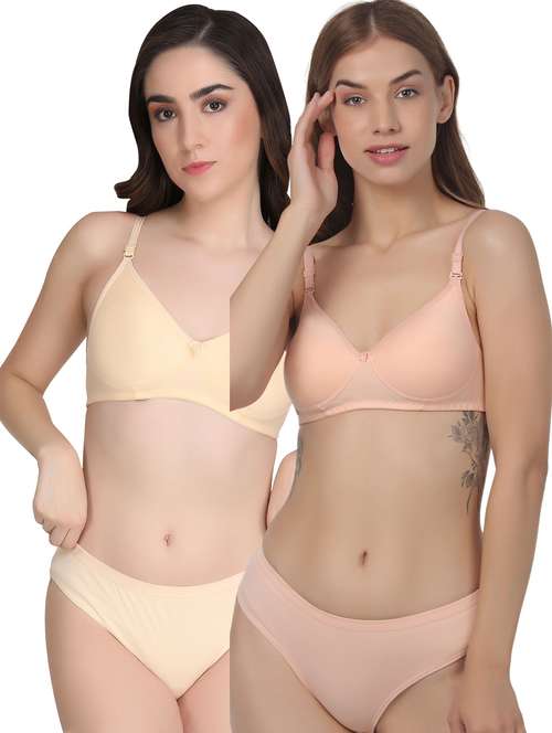 Liigne Women Everyday Padded Bra Panty Set (Pack Of 2) - This Lingerie Set Made of Pure Cotton