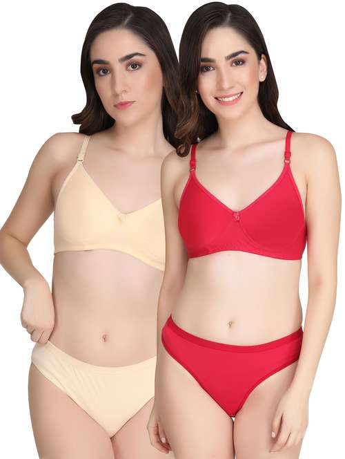 Liigne Women Everyday Padded Bra Panty Set (Pack Of 2) - This Lingerie Set Made of Pure Cotton