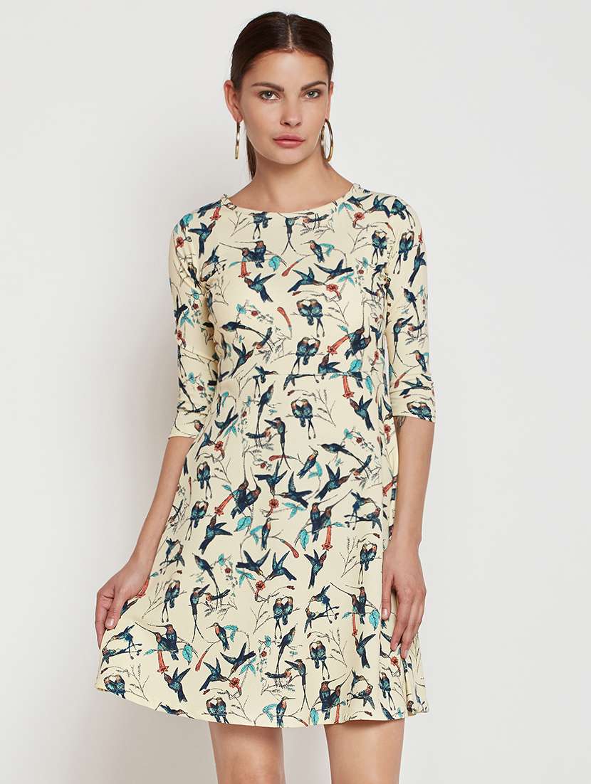 bird print a-line dress