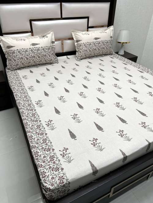 printed tc fitted king-sized bedsheet with 2 pillow covers