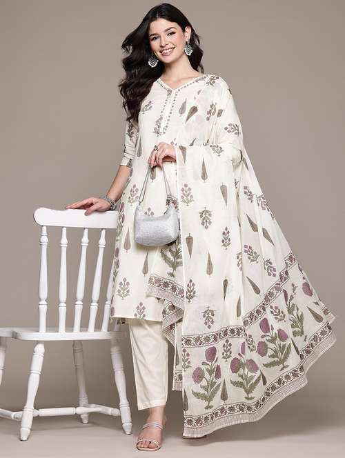 cream cotton suit set