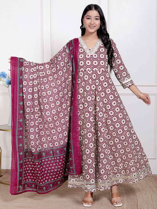 - Find gorgeous sets of ethnic wears in trending designs in magenta colors suitable for festive wear of occasions.