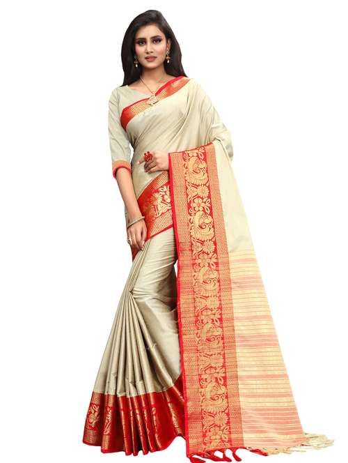 women's self design beige colored saree with blouse - 16860287 - Very Small Image - 1
