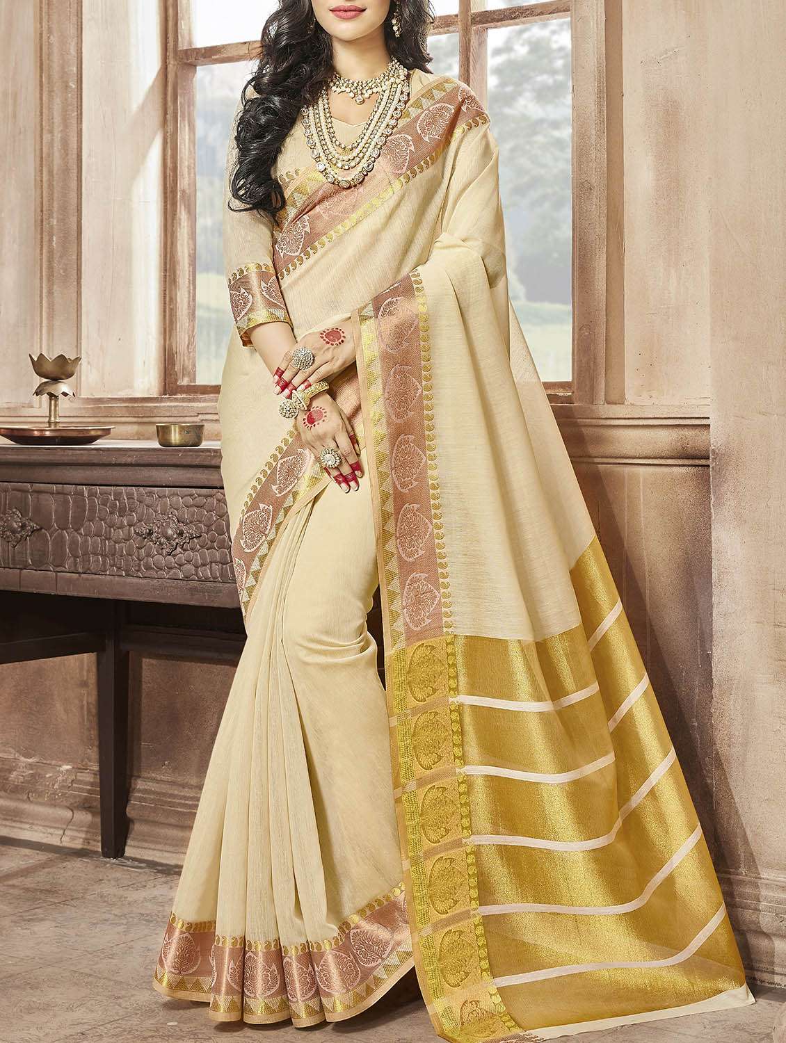 - » cream bordered saree with blouse