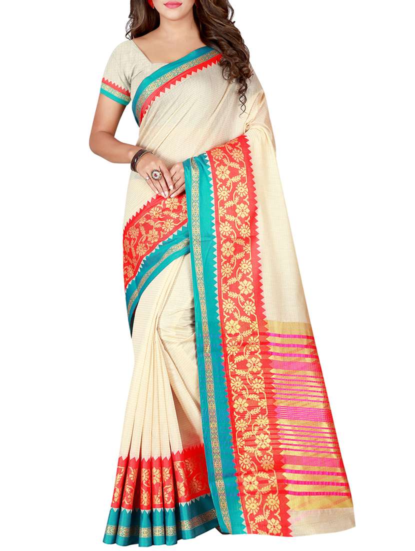 - » cream cotton silk bordered saree with blouse