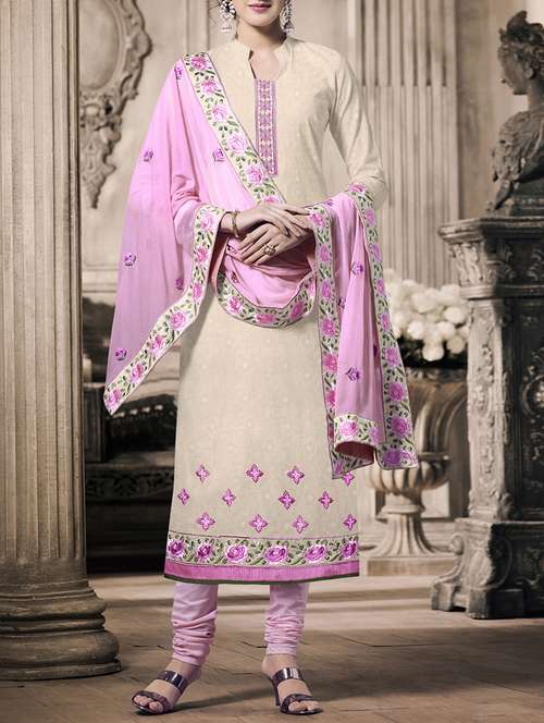 - » cream cotton embroidered dress material