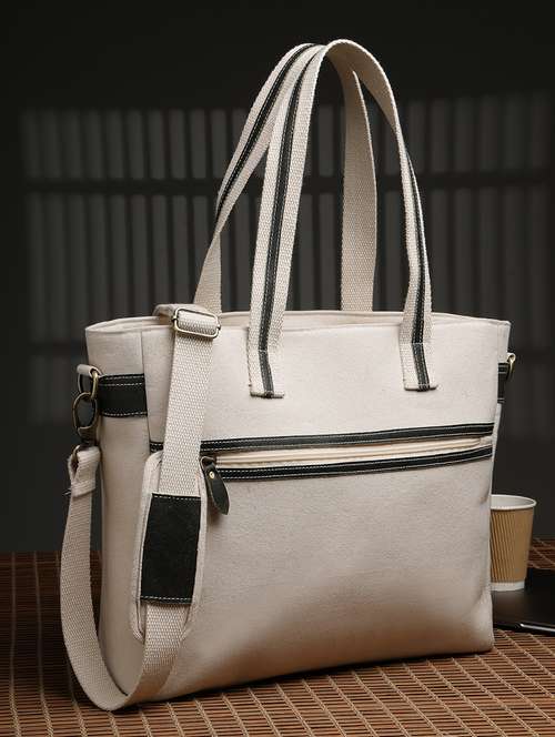 - Expand your bag collection with cream shades of totes handcrafted with unique designs having spacious structure to fit in all your essentials.