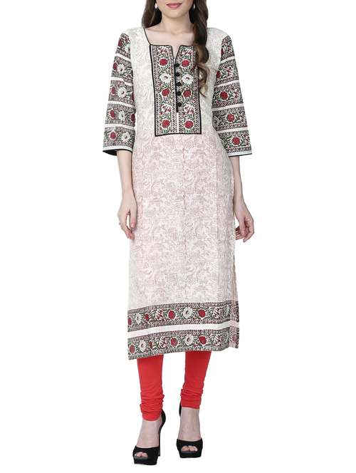 cream cotton straight kurta - 14087109 - Very Small Image - 1