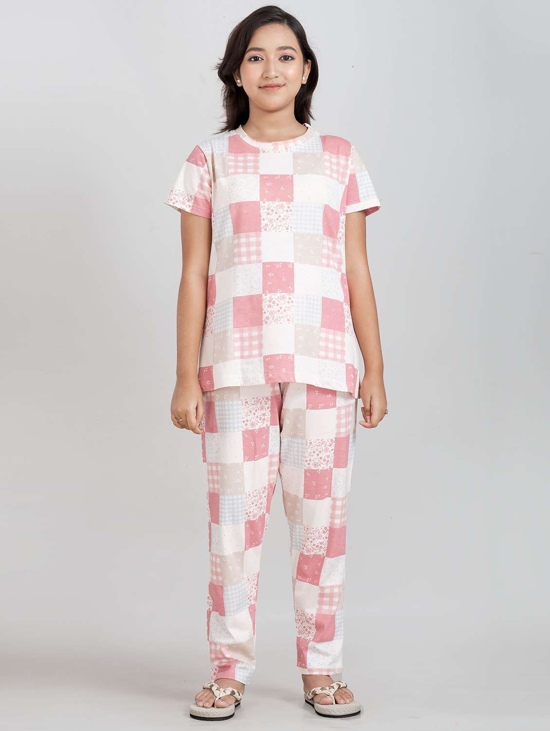 - » girls printed round neck pyjama set nightwear