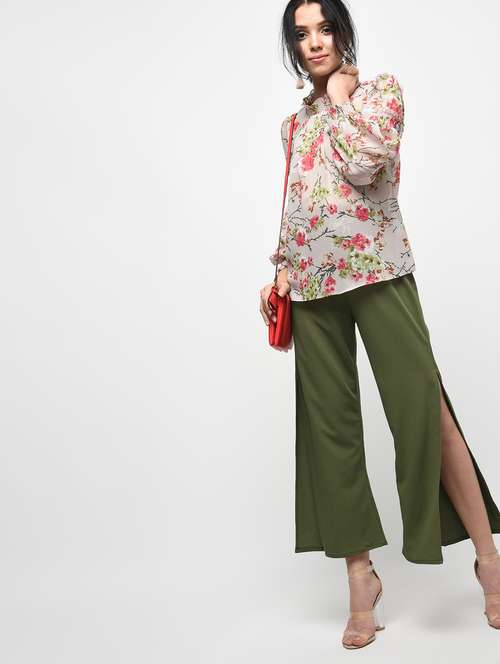 - » smocked sleeved pleat detail floral top